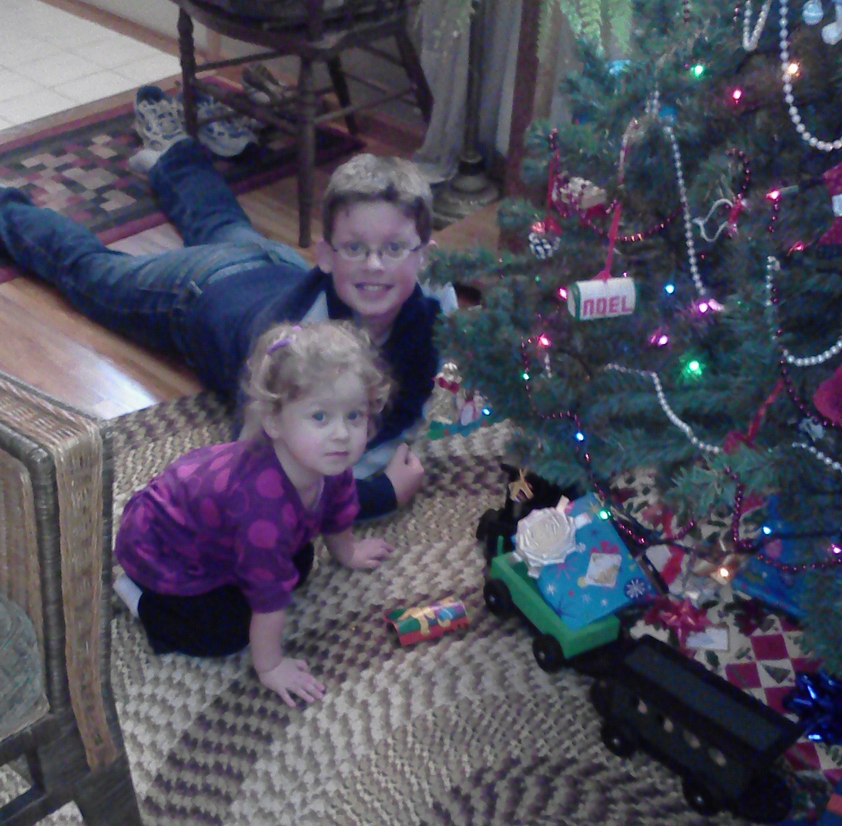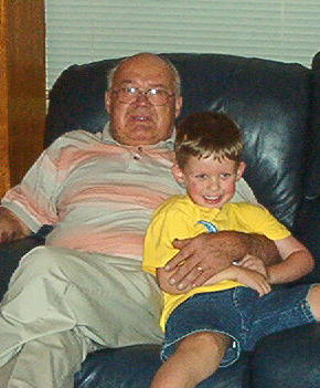 He grins and looks up at me